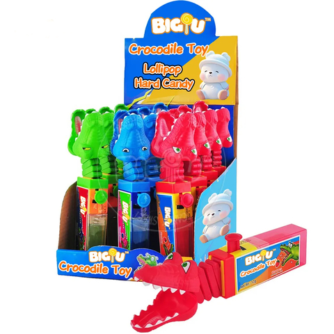 शेंटू कैंडी खिलौने थोक फल स्वाद वाली प्लास्टिक क्रोकोडाइल हार्ड कैंडी खिलौना डिस्प्ले निर्माता